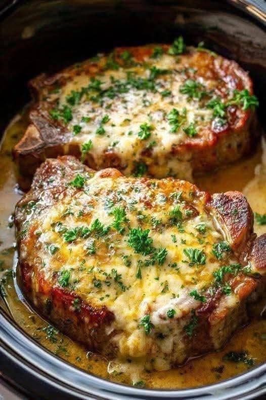 · Spoon the rich onion and mushroom gravy over the pork chops. Garnish with fresh parsley.